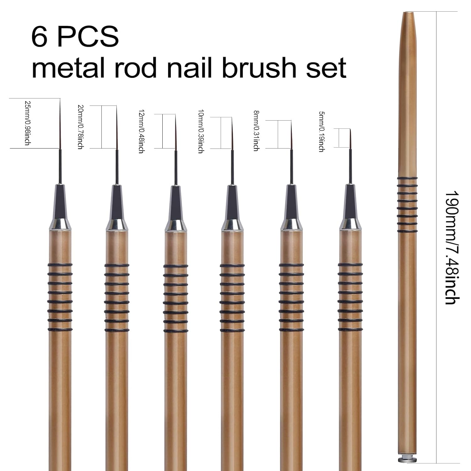 This versatile set includes six liner brushes with varied bristle lengths to suit different nail art techniques: