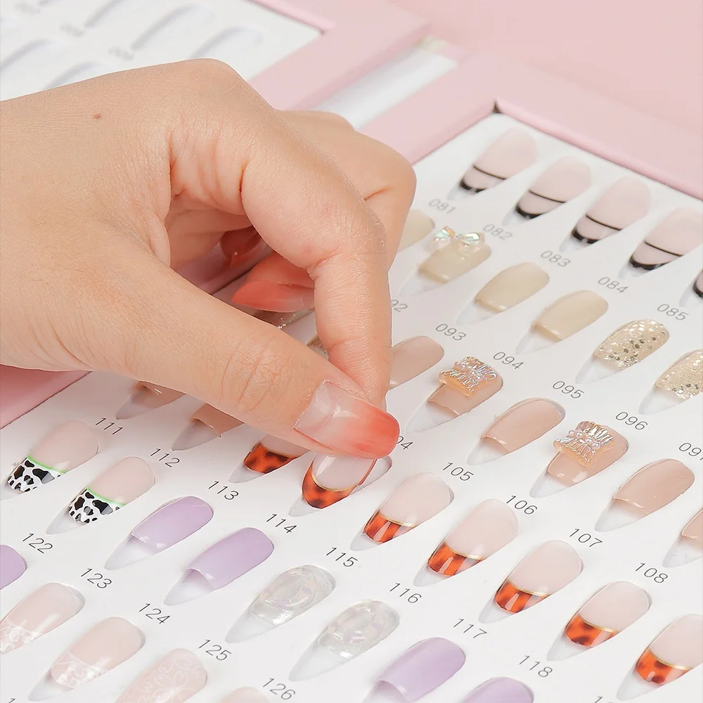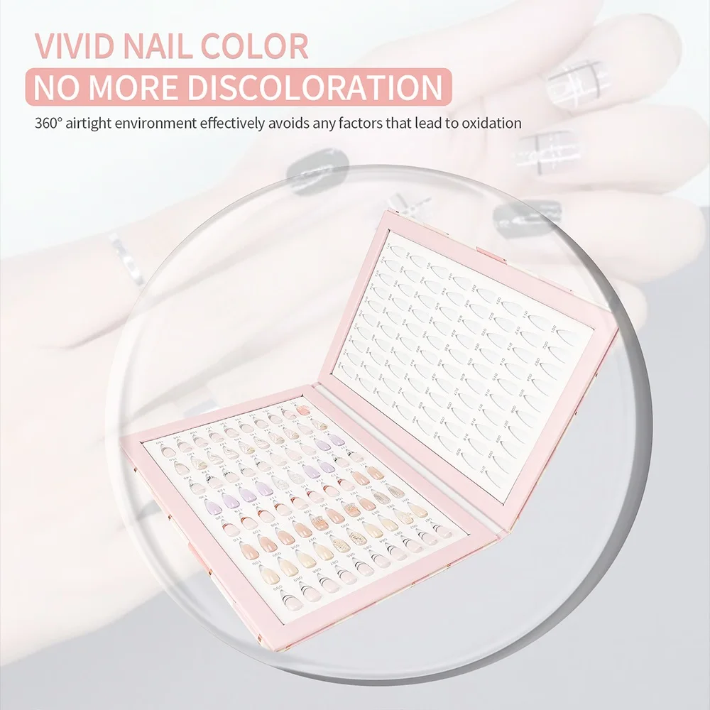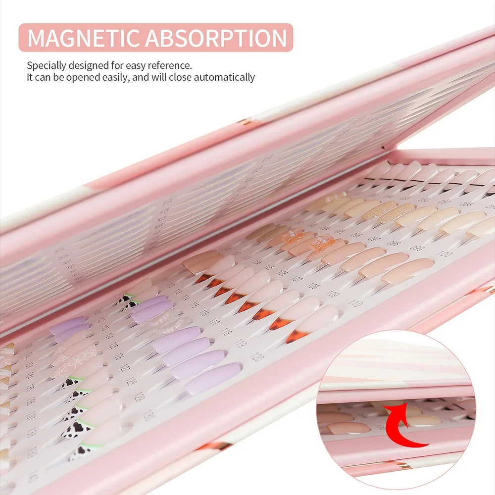 This elegant book-style nail color chart includes 240 high-quality nail tips, allowing you to present up to 160 unique nail colors with extra space for creative combinations, gradients, or designs. The sleek leather-like cover with secure magnetic closure gives it a premium look while keeping your samples organized and protected from dust and damage.