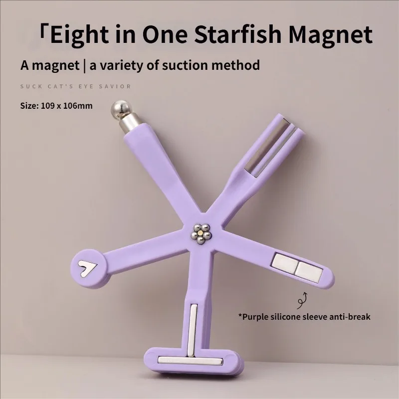 Create stunning cat eye nail designs effortlessly with this 8-in-1 Starfish Nail Magnet Tool, designed for both beginners and professional nail artists. Its unique starfish shape offers multiple magnetic edges, allowing you to craft a variety of eye-catching patterns with just one tool.